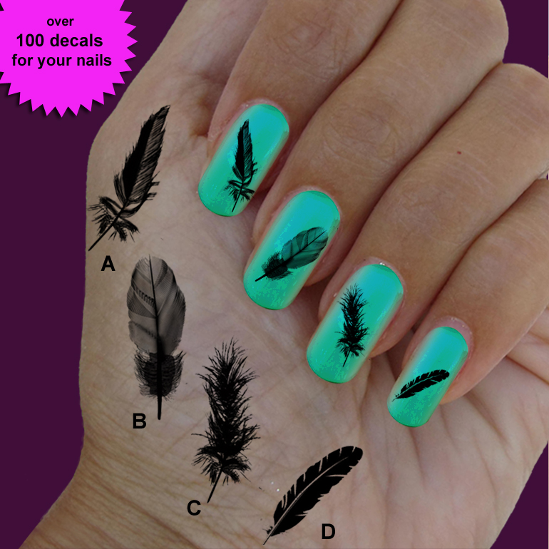 Black Feather Nail Art Nail Decal Set Of 60 Waterslide Nail Decal