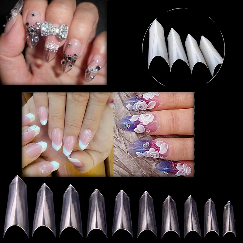 Us 5 45 12 Off New 500pcs Nail Art Ferrari Style Triangle French False Tips Transparent Natural White Uv Gel Polish Nail Art Manicure Tools In