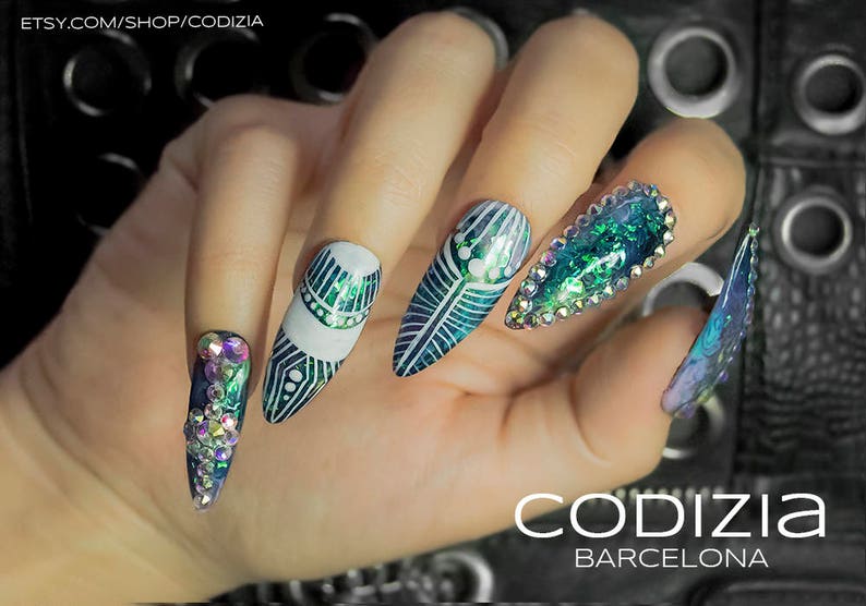 From Another World Fine Line Nail Art Work Stiletto Nails Etsy