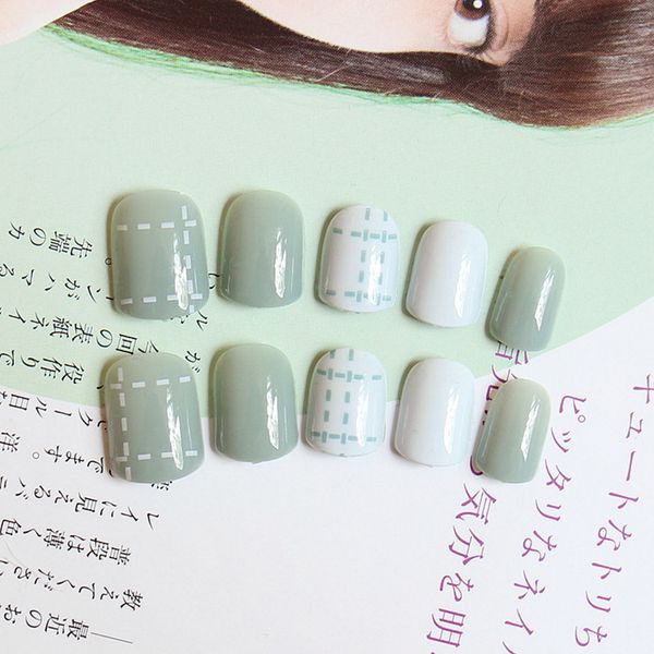 Simple Fine Line Short Paragraph Finished Fake Nails Be Applicable