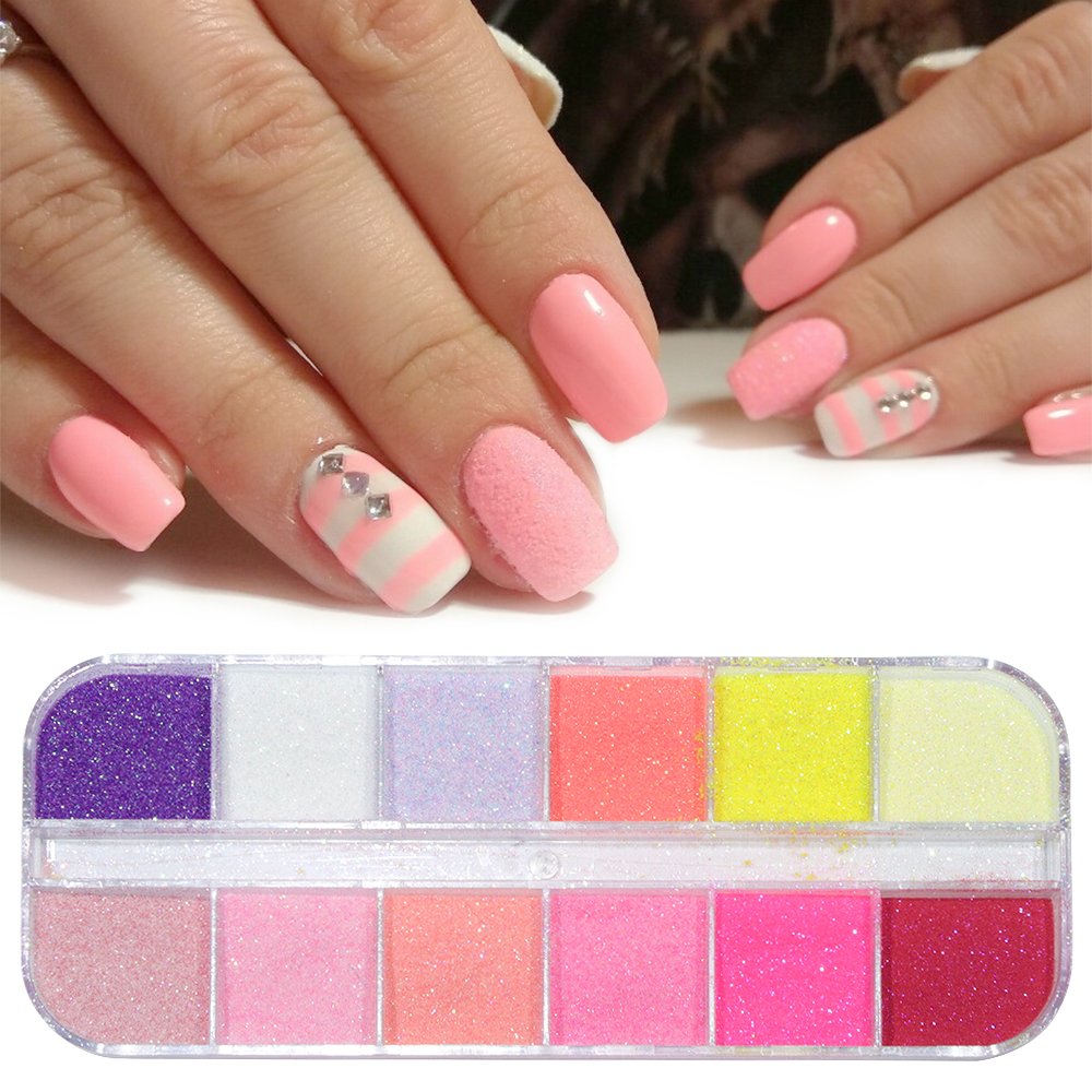 Amazon Com 12 Mix Color Pastel Nail Art Glitter Sugar Powder Fine