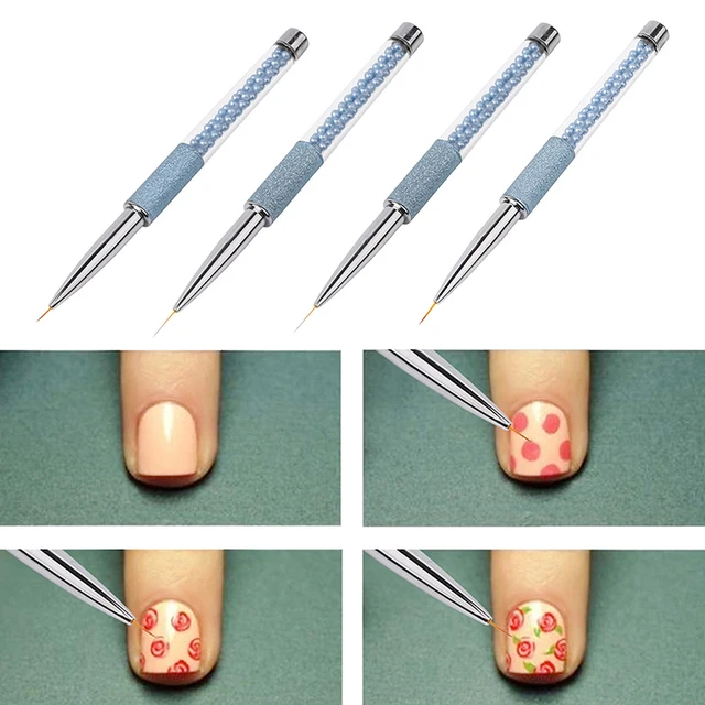 Us 2 6 16 Off 1pc Nail Art Painting Pen 3d Tips Diy Draw Fine Lines Or Special Patterns On Nails Flower Line Grid Nail Art Tool 4 Sizes In Nail