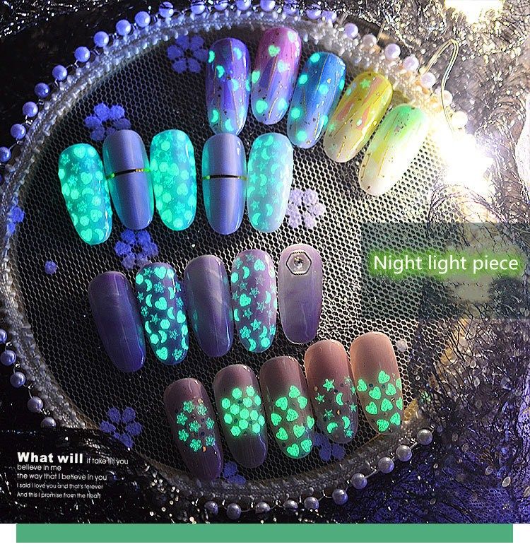 Bkld New Nail Art Luminous Firefly Sequins Ultra Thin Circle Love Form Pentagram Fluorescent Green Patch Nail Art Tools