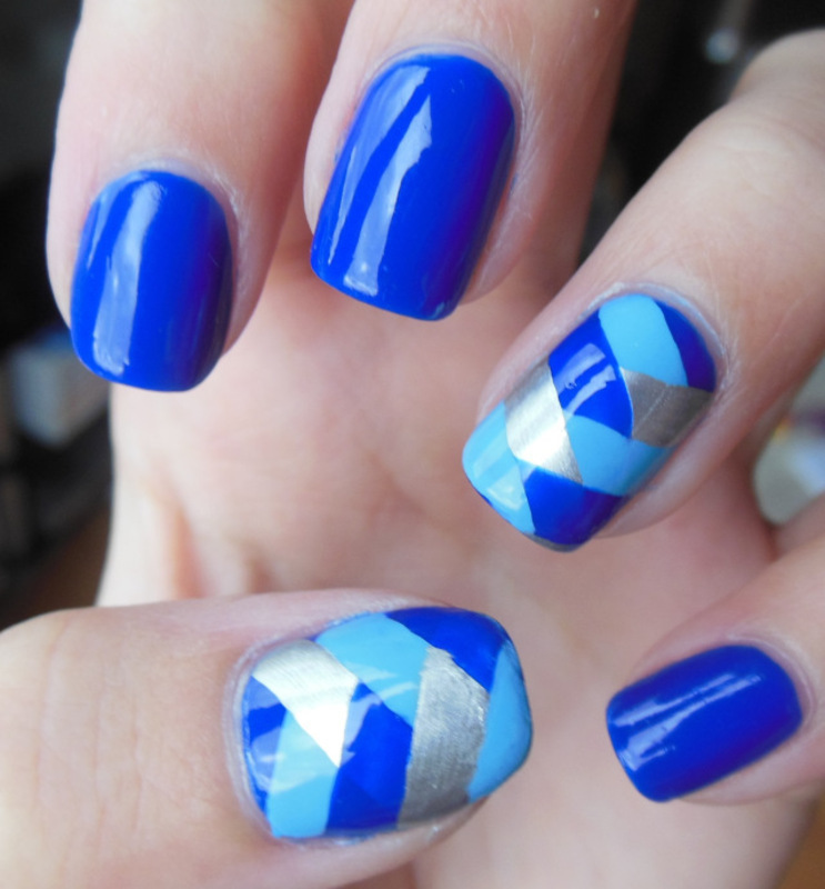 No Tape Fishtail French Manicure Nail Art In Blue Purple White Silver