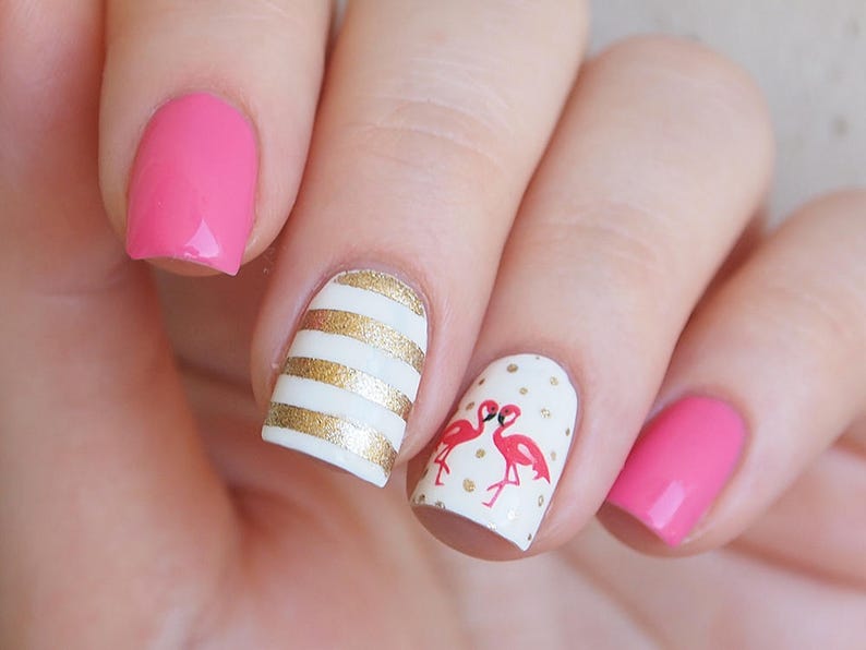Pink Flamingo Nail Decal Nail Sticker Nail Art Nail Art Stickers Nail Art Decals Set Of 20