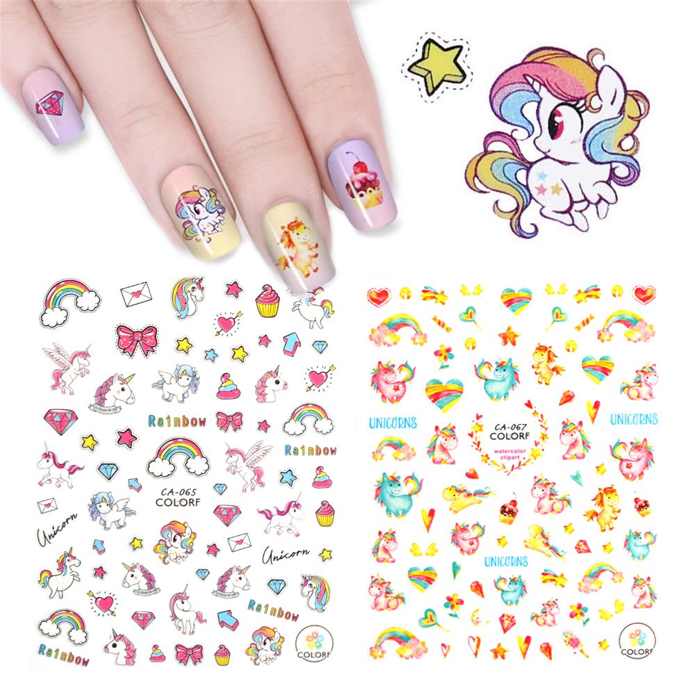 1 Sheet Cutefashion 3d Unicorn Flamingo Nail Sticker Colorful Rainbow Star Heart Adhesive Nail Decal Diy Beauty Art Tools