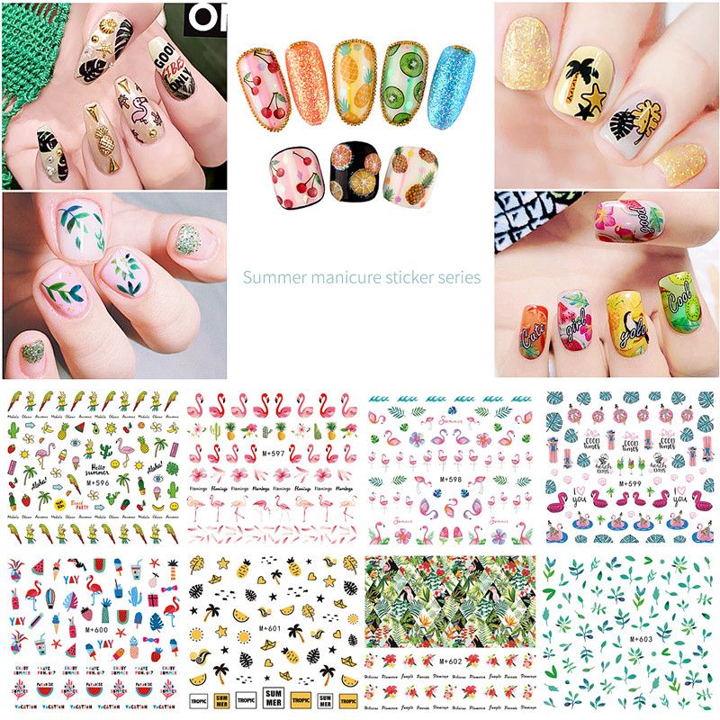 Summer Style Beach Mermaid Palm Tree 3d Nail Art Sticker Wraps Flamingo Nail Stickers Self Adhesive Stickers Women Nail Decals In Stickers Decals