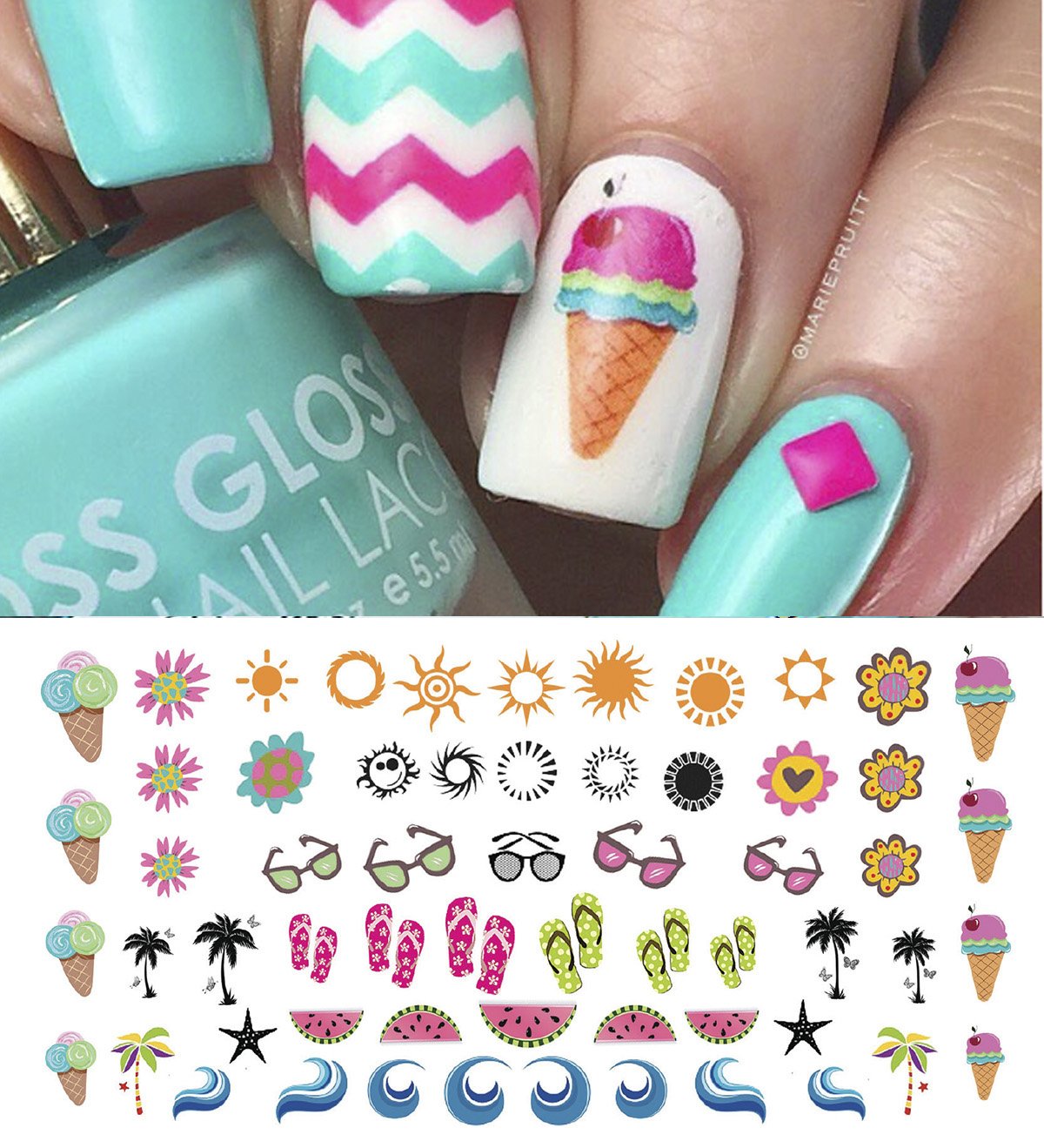 Flip flops water nail art transfers stickers decals set of 54. Tinksky 50 sheets 3d design self adhesive tip nail art stickers decalsrandom color pattern 3d sea and beach life decorations design pattern. Nail art from the nails magazine nail art gallery hand painted flip flop.
