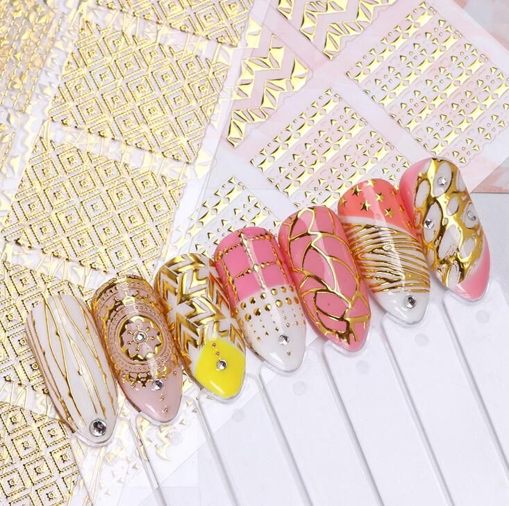 Find To 3d Nail Sticker Nail Art Floating Gold Bronzing Checkered