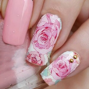 14pcs Sheet Floral Nail Wraps Foils Pink Roses Nail Art Full