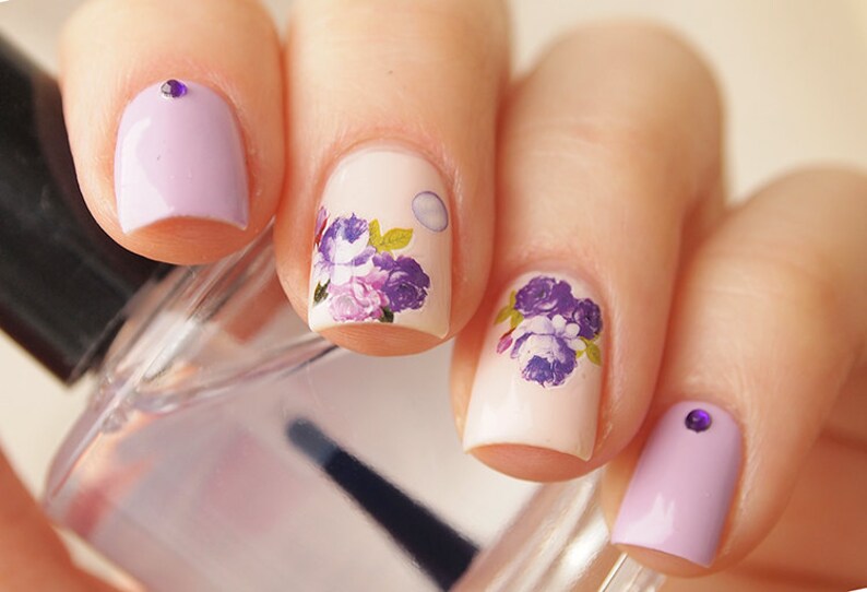 Purple Floral Bud Nail Decals Floral Nail Stickers Nail Art Etsy