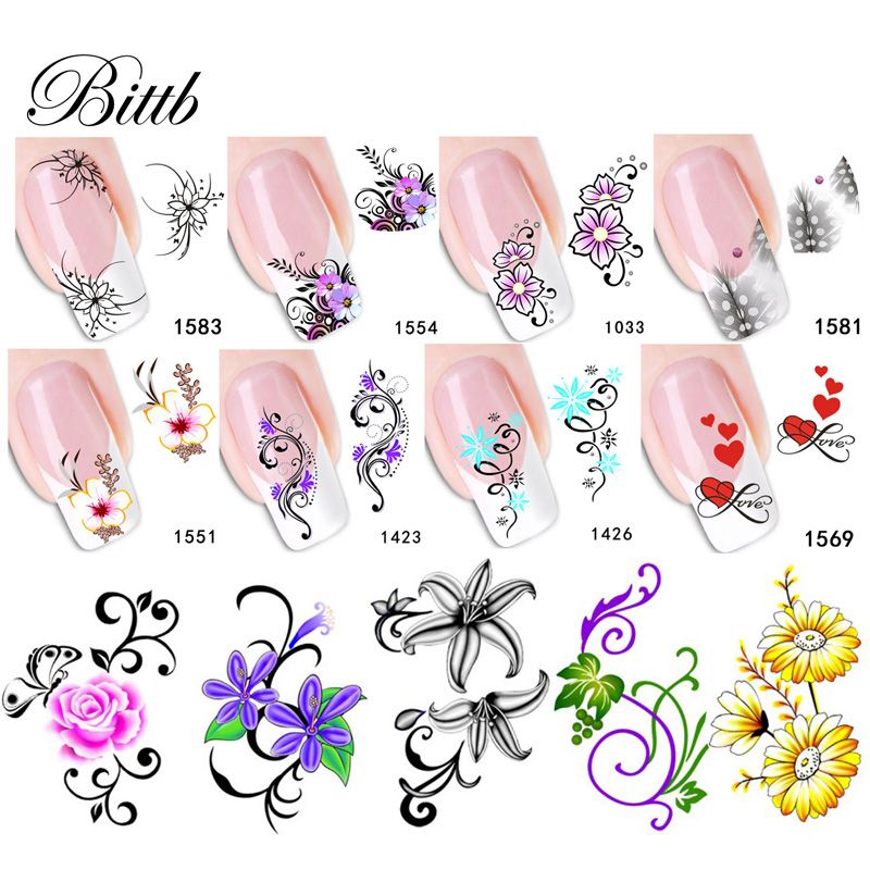 Bittb Flower Nail Sticker Cute Floral Nail Art Stickers Watermark