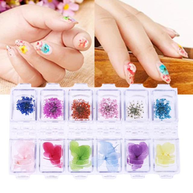 12 Colors 3d Real Petal Dry Dried Flower Stickers Design Uv Gel Nail