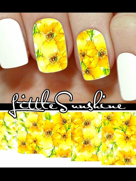 Nail Art Water Transfer Stickers Yellow Flowers Floral Etsy