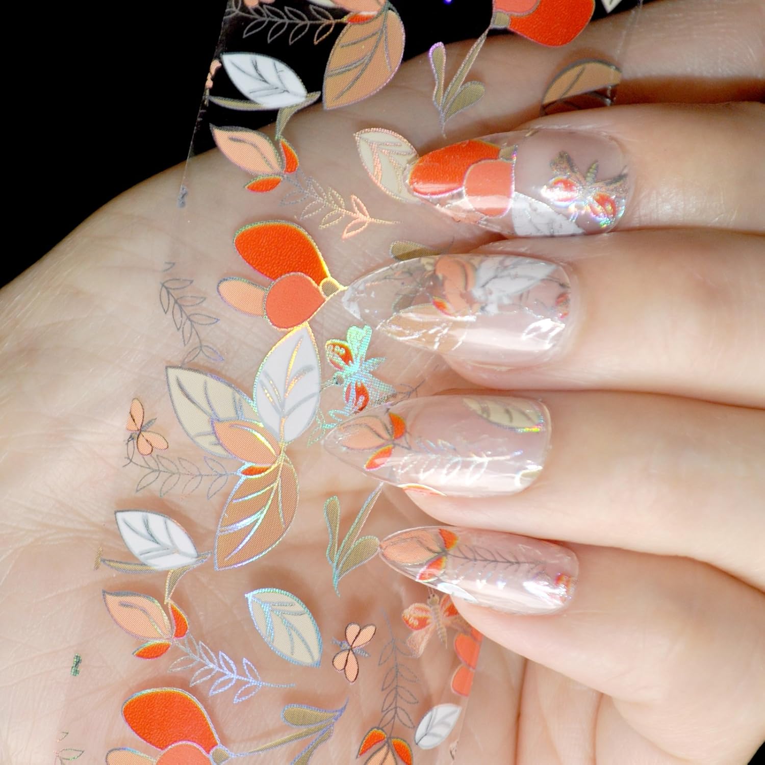 Amazon Com Coolnail 100cm X 4cm Laser Colorful Leaves Nail Art