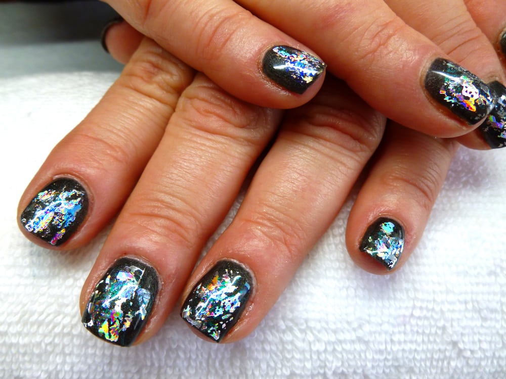 Rainbow Foil Nails With Gel Polish Chickettes Natural Nail Studio