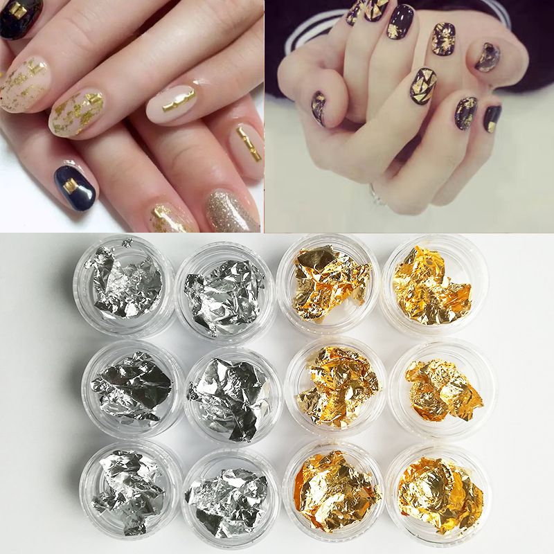 4 Jar Gold Foil Paper Nail Art Design Supply Nail Foil Flakes Etsy