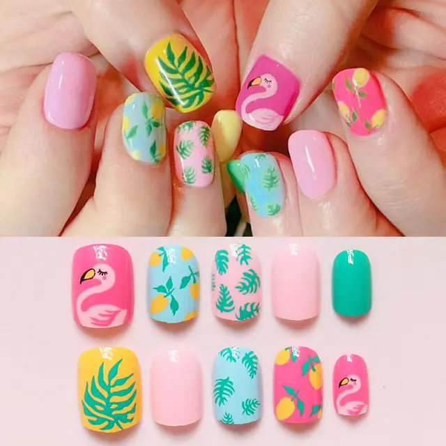 24pcs Set Lively Color Animal Forest Design Resin Nail Art False