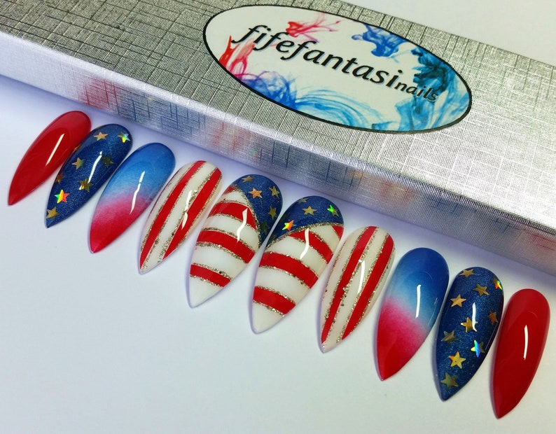 4th July Press On Nails American Flag Nails Usa Patriotic Etsy