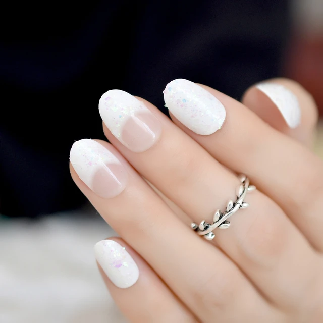 Amazon Com 24pcs Set Silver French Glitter False Nails Round Head