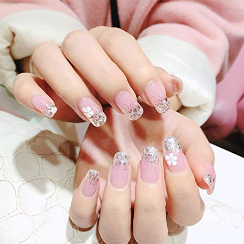 Amazon Com Yunai 24pcs Set Art False Nails French Manicure Glitter