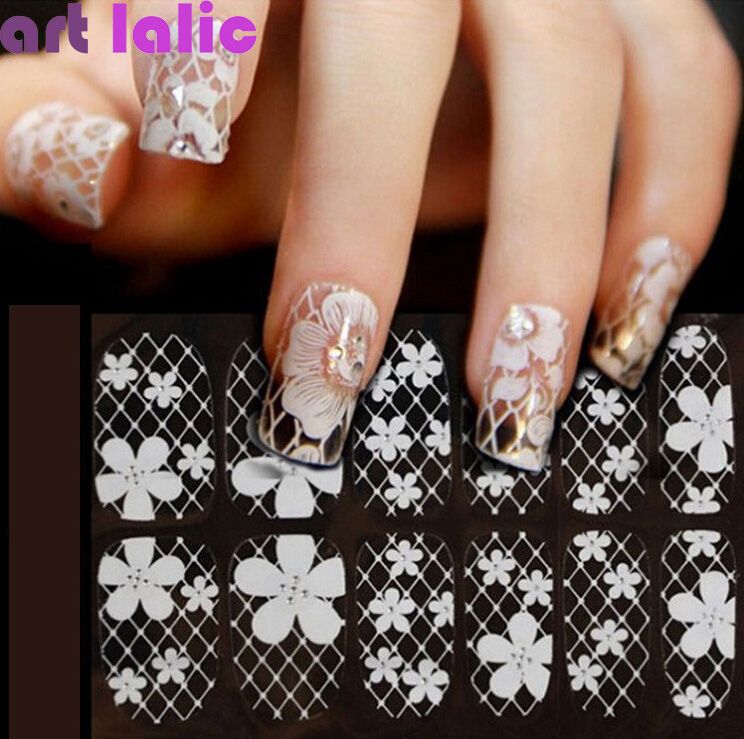 Wholesale 1 Sheet 3d French Style White Lace Bow Nail Art Sticker
