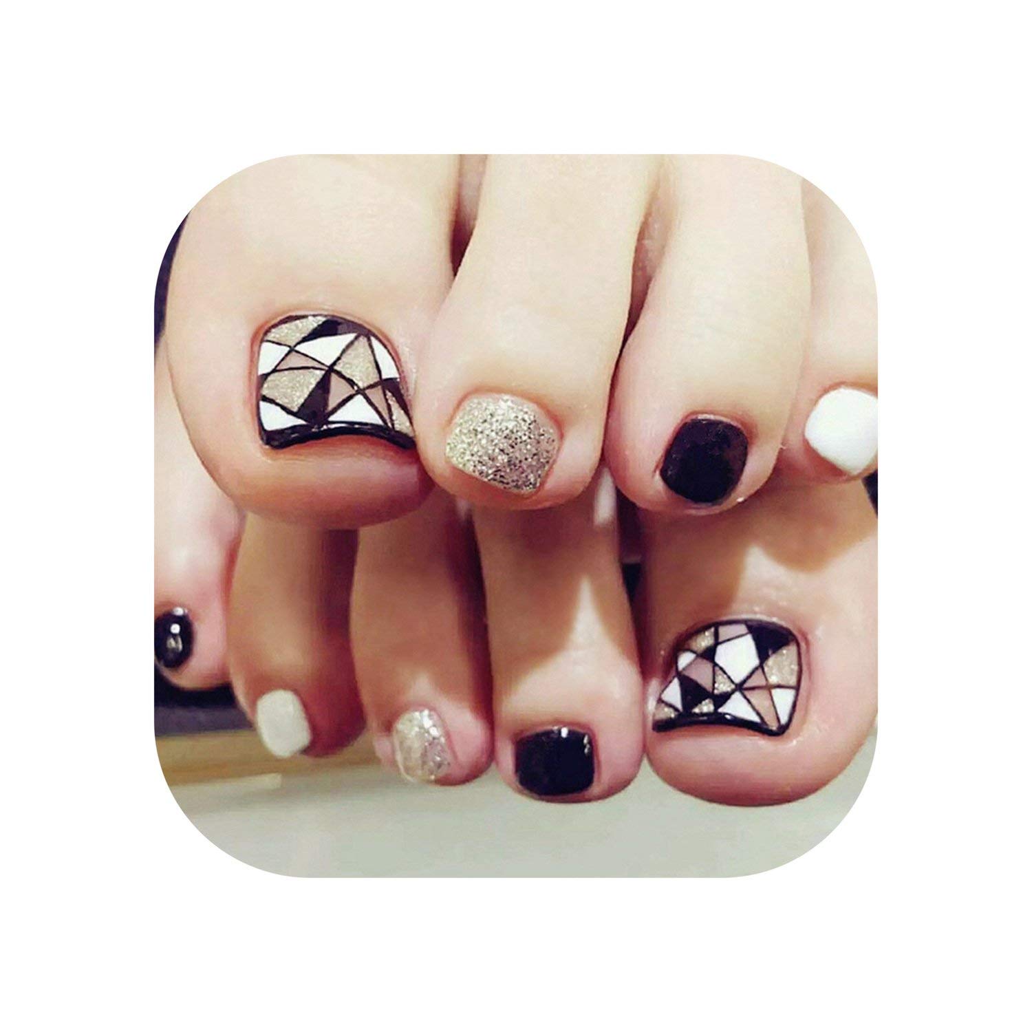 24pcs False Toe Nails French Toe Nail Tips Acrylic Fake Toe Nails