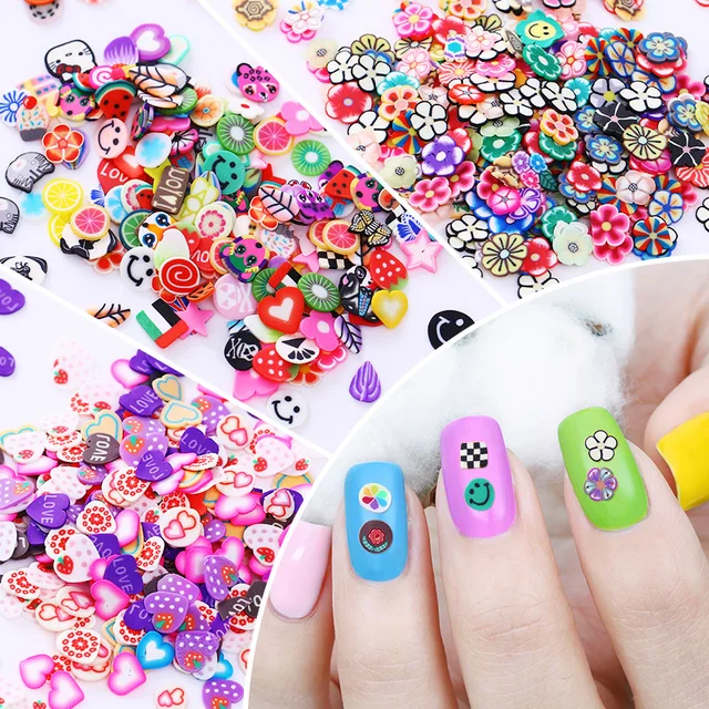 1000pcs 3d Fruit Animals Fimo Slice Clay Diy Nail Art Tips Sticker