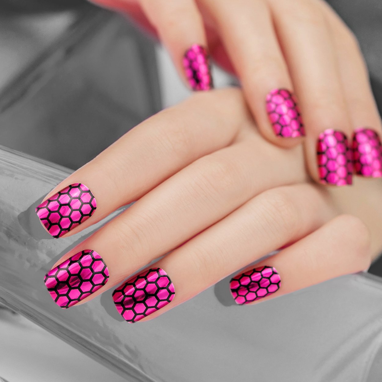 Amazon Com Artplus 24pcs Fuschia Nest Chrome False Nails With Glue