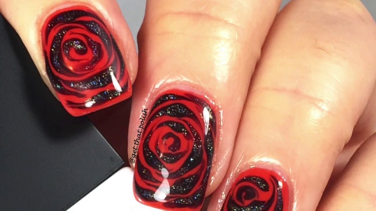 Nail Art Tutorial Using Gel Goth Flowers For Halloween Youtube
