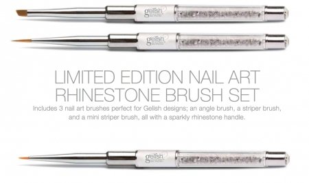 Gelish Nail Art Brush Set With Coloured Rhinestones 3pc Kit