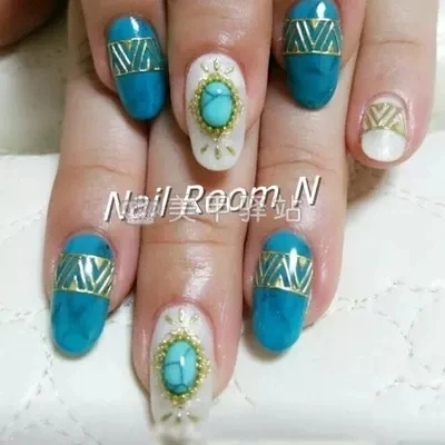 Turquoise Gemstones Nail Art By Rebecca Nailpolis Museum Of Nail Art
