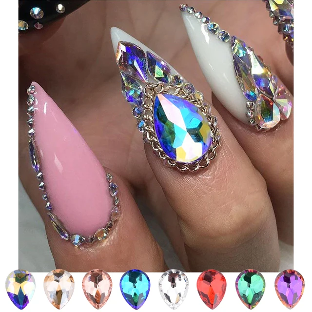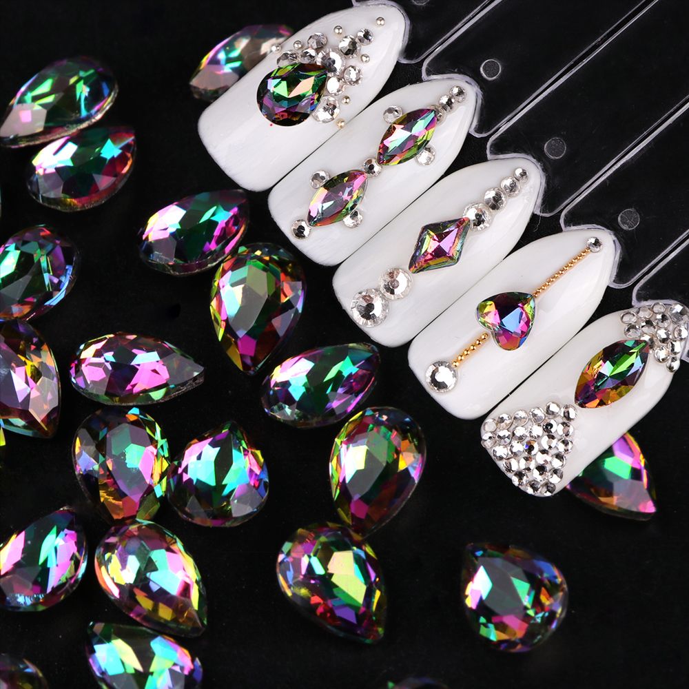 10pcs Nail Crystals Stones Flatback Drop Ab Rhinestones 3d Nail Gems
