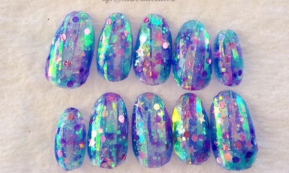 Sparkly Glitter Starry Glass Gel Nail Art Press On False Fake Etsy
