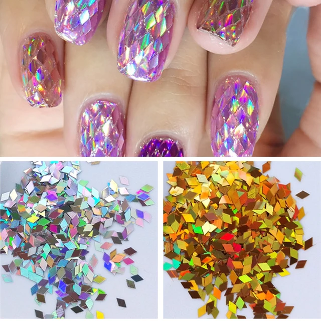 1 Box Laser Gold Silver Nail Sequins Sparkles Holographic Rhombic