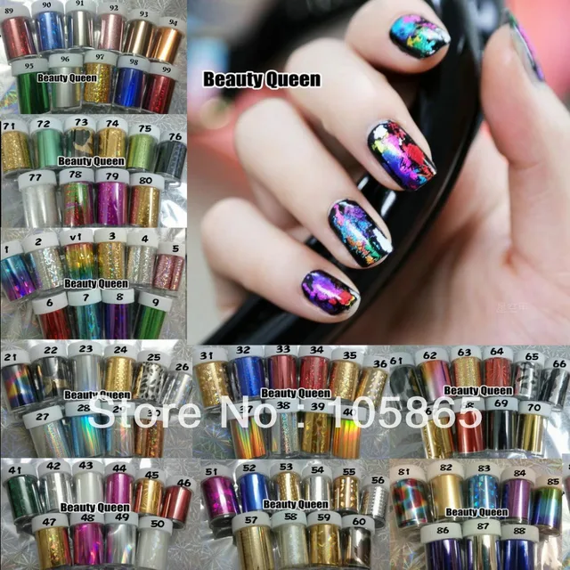 Us 52 0 100 Colors Mixed Glitzy Nail Art Transfer Nail Foil Sticker Wrap Nail Tip Decoration Easy Adhesive Craft Shine Foils Acrylic Gel In