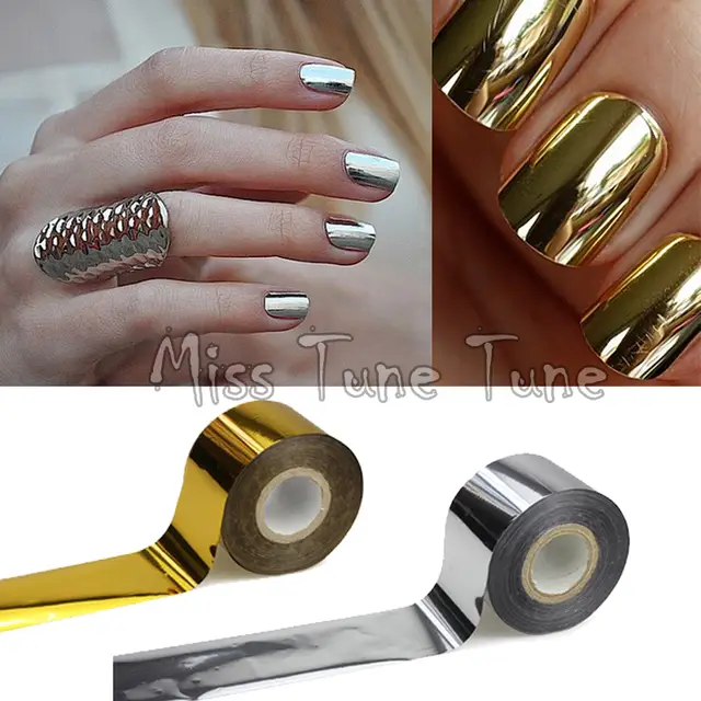 1 Rolls 120x4cm Metallic Mirror Effect Chrome Nails Gold Silver Nail