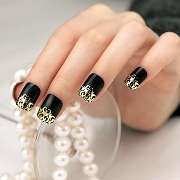 Amazon Com Artplus 24pcs Black Gold Chrome False Nails With Glue