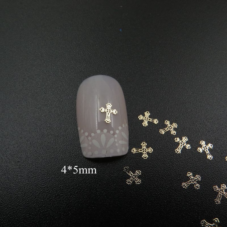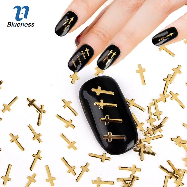 Us 3 58 3d Nail Art Decoration Cross Gold Smooth Design Charms Manicure Stud For Diy Nails Accessories Pj594 In Rhinestones Decorations From