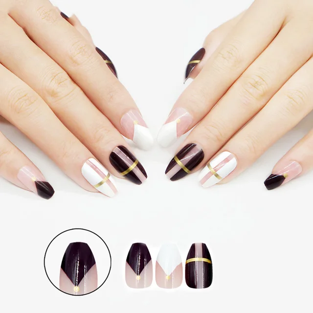 Us 2 32 27 Off 24pcs Set Golden Cross Artificial Coffin Nails Ladies Nail Art Decoration Full Cover False Nail Tips With Glue Long Fake Nails In