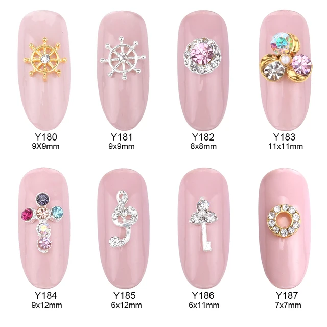 Us 1 29 8 Off 10pcs Gold 3d Rudder Metal Flower Pearl Music Note Mixed Rhinestones Cross Nail Art Decoration Jewelry Nails Supplies Y180 187 In