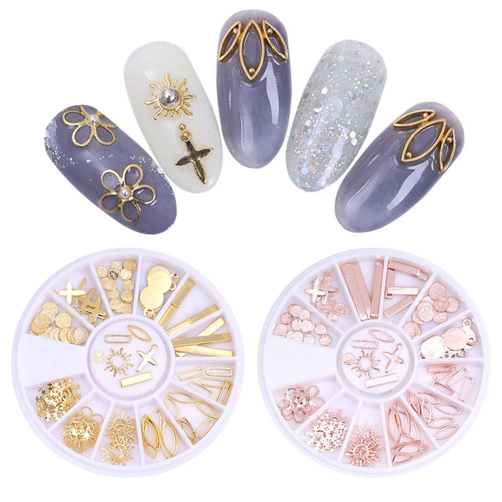 1 Box Gold Rose Gold Cross Sun Flower Snowflake Leaf Patterns Nail Diy 3d Manicure Nail Art Decoration In Wheel