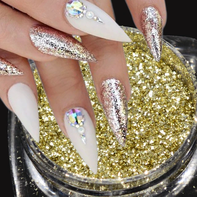 12 Pcs Nail Art Gold Silver Paillette Flake Chip Foil Diy Acrylic Uv