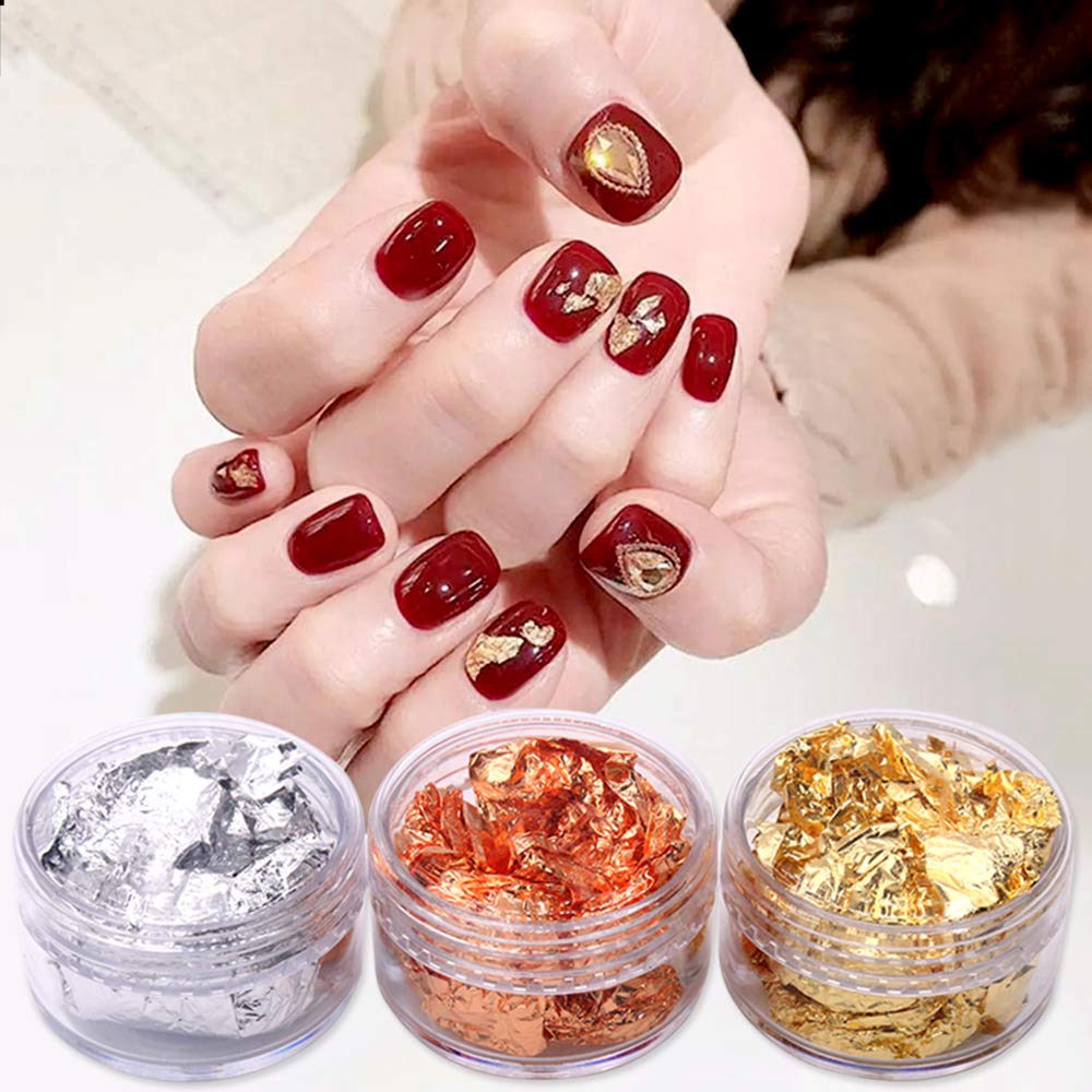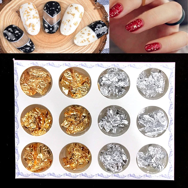 Amazon Com Cattie Girl 2boxes Sliver Gold Foil Chrome Flakes Bling