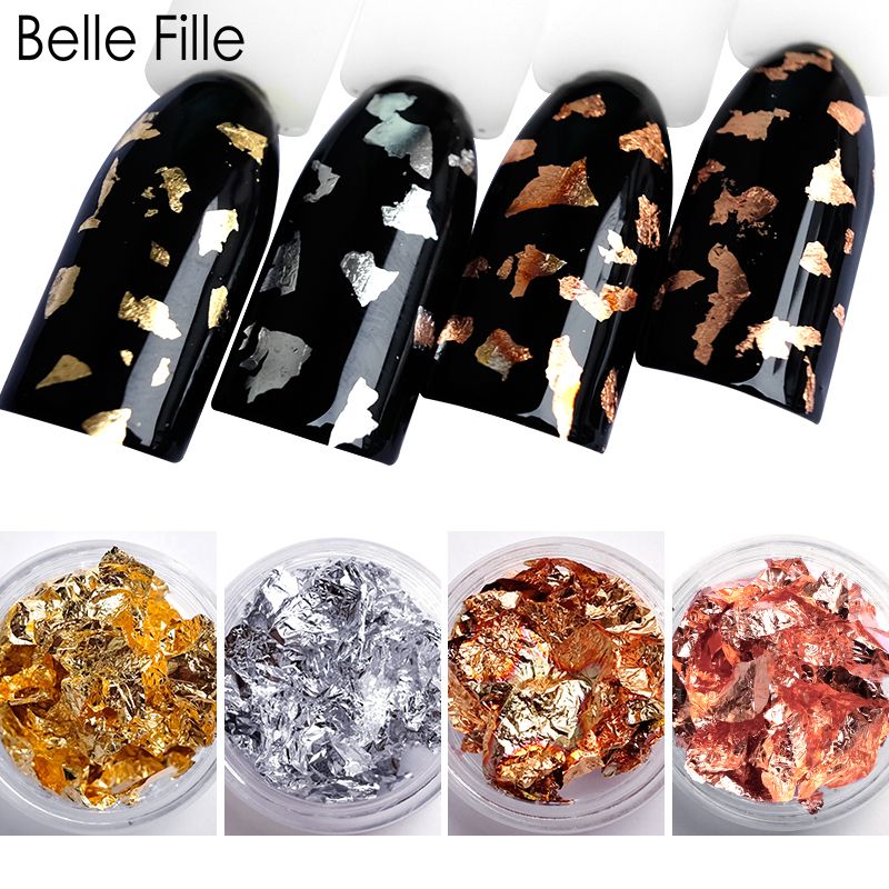 Nykkola foil paillette nail art set chip glitter 12 boxes nails accessories for foil transfer nail art design decoration flake and mirror effect gold and silver. Jar small 3 jars nail art foil different colors gold rose gold and silver metallic for design leaf flakes canoda. May paris teaches how to use and apply gold foil on your nails. Gold nail charms 3d leaf craystl rhinestones ab drop stone cute snake bees moon design nail art professional supplies 30pcs.