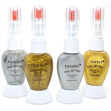 Amazon Com 4 Nabi Glitter Regular Silver Gold Nail Art Pen Brush