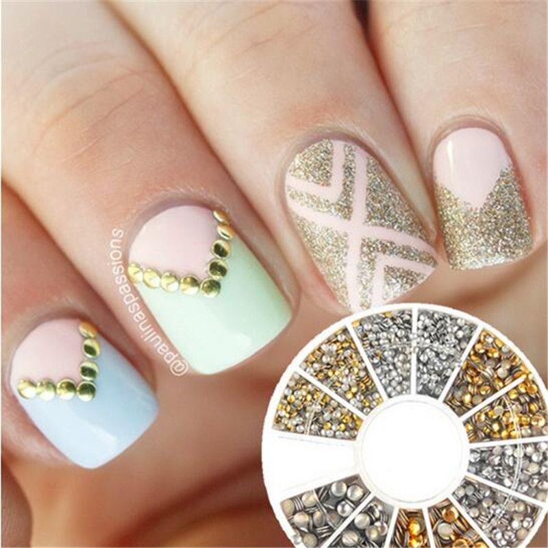 1box Nail Art Rhinestone Mini Round High Quality Gold And Silver Diy