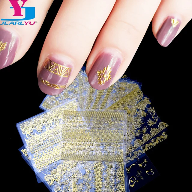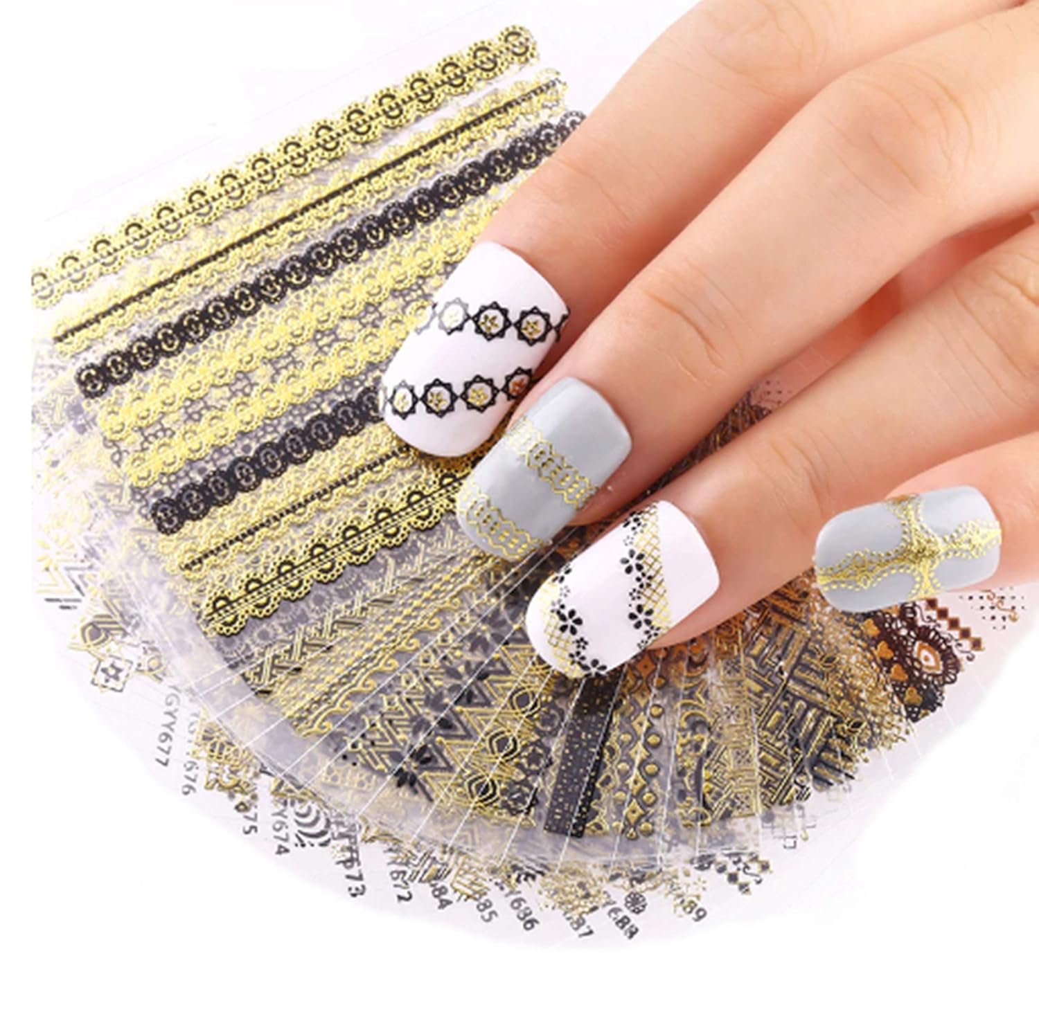 Amazon Com Gold Stripe Lace Nail Art Sticker Decals Decoration Self
