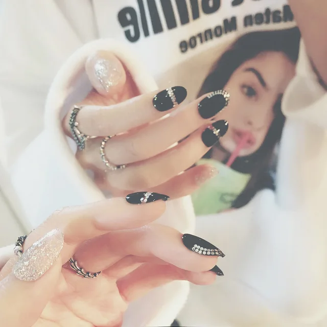 Fashion Black Round Head False Nail Art Tips Gel Fake Finger Tips
