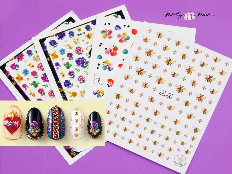 Floral And Bee Nail Art Sticker Diy Tips Guides Transfer Etsy